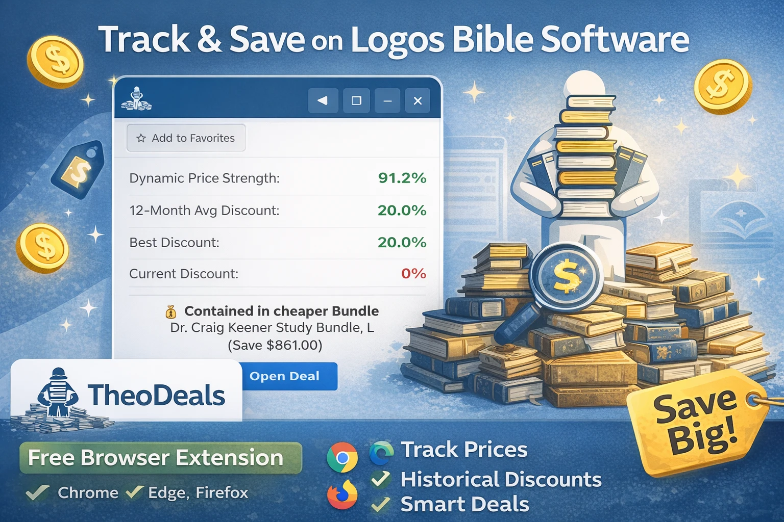 Theo Deals ist ein unabhängiges Projekt, das Logos-Nutzern bei besseren Kaufentscheidungen hilft. Wir sind nicht mit Logos Bible Software oder Faithlife Corporation verbunden.