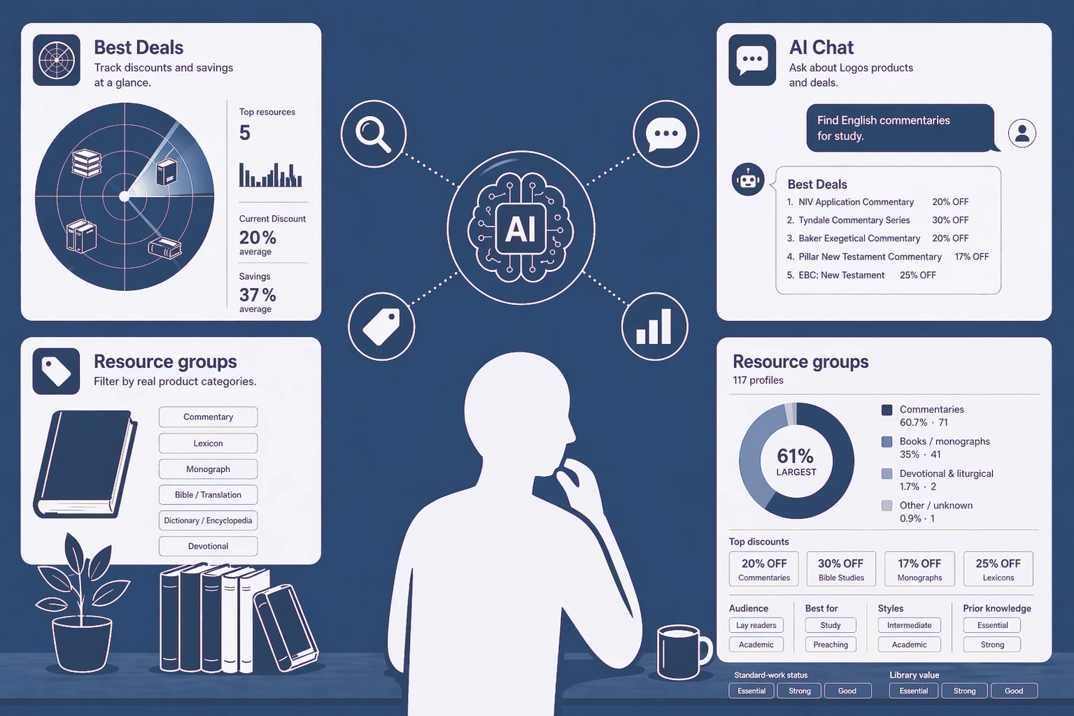 Products are now tagged with many more AI-supported categories and filters. That makes it much easier to search in more meaningful ways instead of relying only on title, author, or price. For example, filters can now help surface products by type, audience, style, tradition, best use, library value, and more.